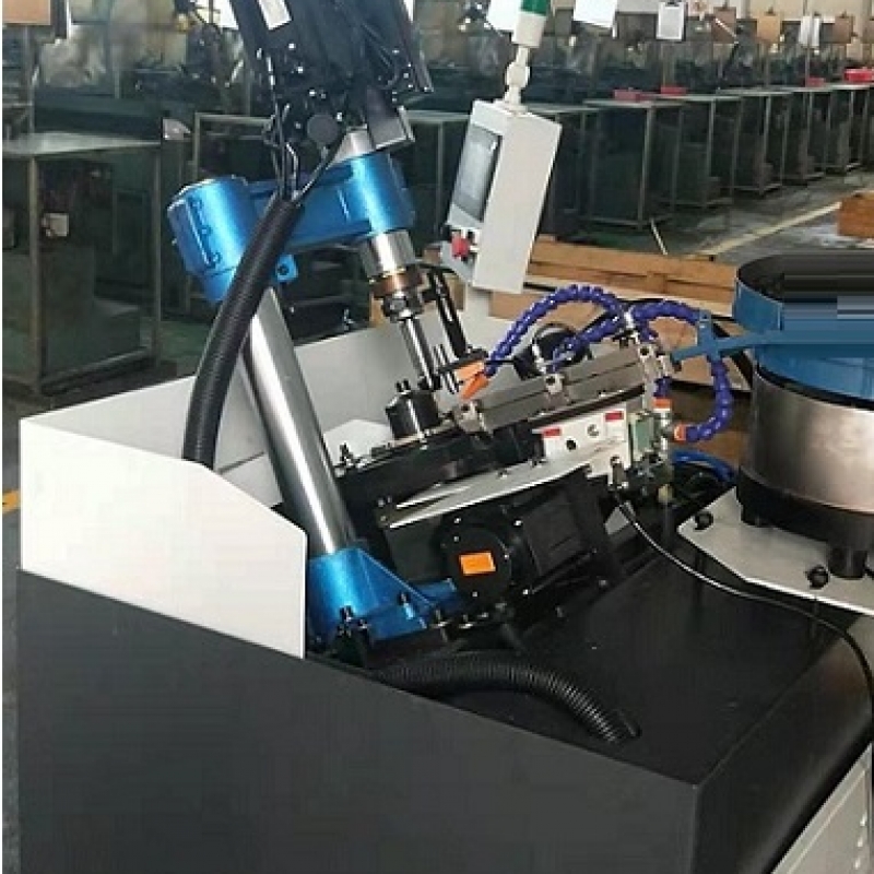4、设备主要针对:各类非标五金紧固件盲孔,通孔,横孔,倒角,扩孔等加工,夹具可灵活拆换,可适用不同外形工件产品攻牙加工,牙距可自由设 定,攻牙速度任意可调。