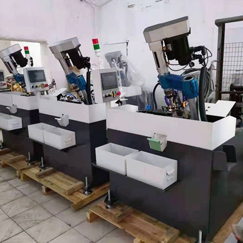 4、设备主要针对:各类非标五金紧固件盲孔,通孔,横孔,倒角,扩孔等加工,夹具可灵活拆换,可适用不同外形工件产品攻牙加工,牙距可自由设 定,攻牙速度任意可调。